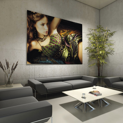 FRAMFRAME är dubbelsidig och kan även förses med fötter för att göra en golvstående dubbelsidig lösning. Man kan också hänga FramFrame från taket och exponera bilder dubbelsidigt.