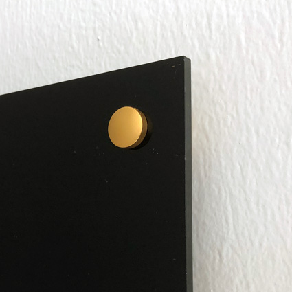 FISSO Mix 18/18 matt guld - skyltdistans tillverkad i aluminium med vänstergängad (!) skalle. Vänstergängor som gängas in i distanskroppen. Förutom designmotiv - är aluminium ett bra val när man inte vill blanda material för att undvika galvanisk korrosion. FISSO Mix 1818 alu en liten och diskret lösning för små skyltar.