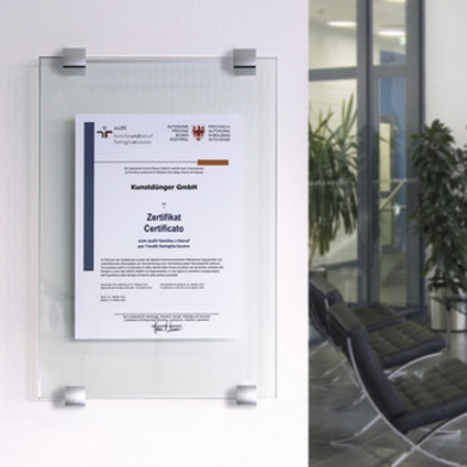 Elegant klämsystem för väggmonterade skyltar när Du inte kan eller vill göra hål i skivmaterialet. Den bakre profilen monteras på väggen, den främre profilen klämmer fast skivmaterialet mot den bakre och låser fast med en dold låsskruv. Clamper finns i olika längder och kan användas för skivmaterial upp till 10 mm tjocklek.